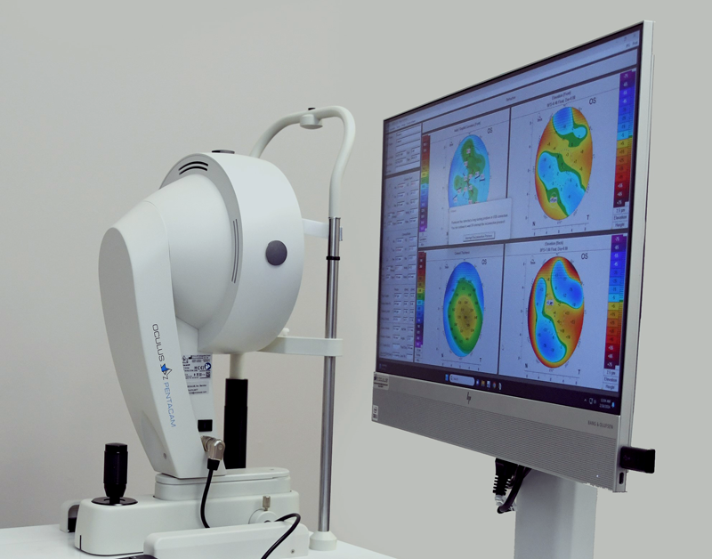 The OCULUS Pentacam machine measures the anterior segment of the eye and shape of the cornea.